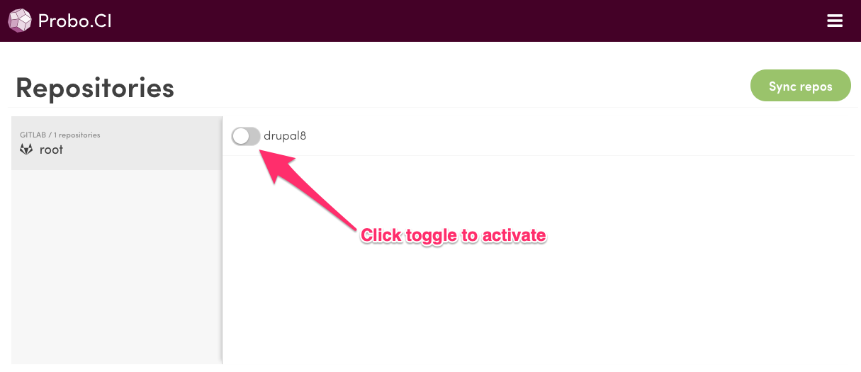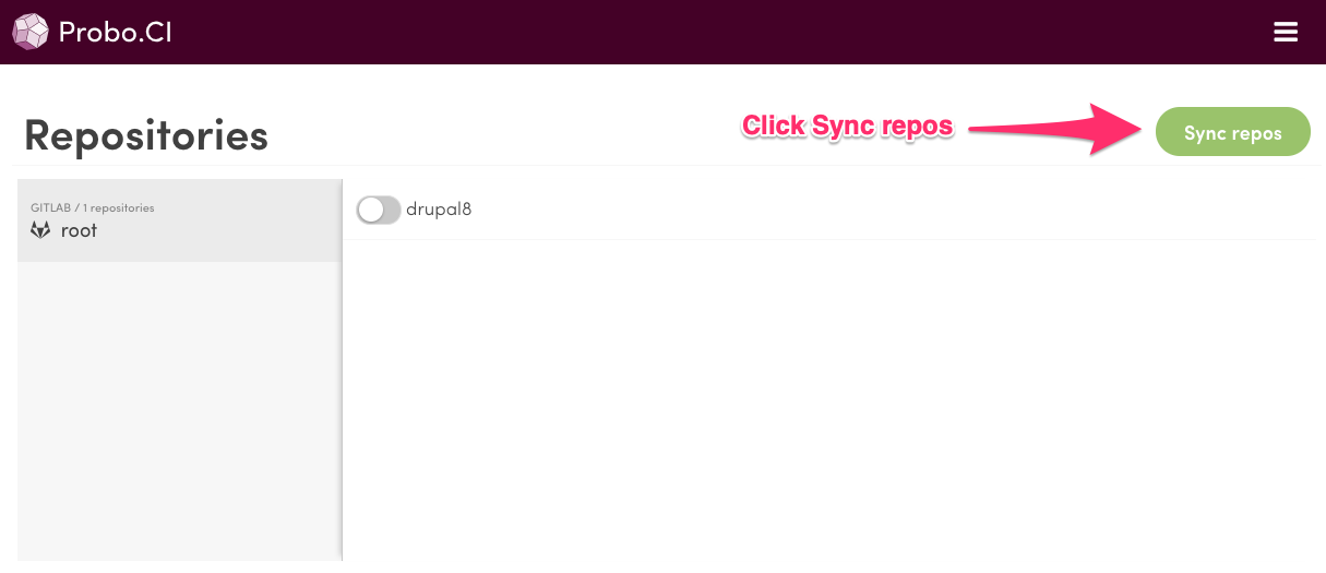 Now that you have your OAuth application configured and added to Probo.CI, you can authenticate with your GitLab Server.
