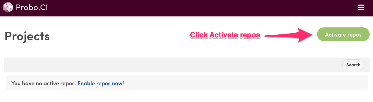 Go to https://app.probo.ci/#/self-hosted to authenticate, or go to the Projects Dashboard, https://app.probo.ci/#/dashboard/projects if already authenticated.